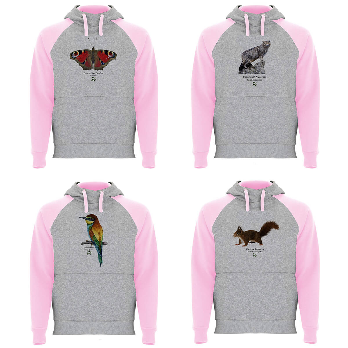 Παιδικό Φούτερ ροζ-γκρι – διάφορα σχέδια με ζώα της Ελλάδας